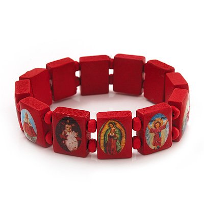 Here are some of the great features of Stretch Red Wooden Saints Bracelet / Jesus Bracelet / All Saints Bracelet - Up to 20cm Length