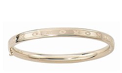 This baby bangle is made of 14K yellow gold with all around delicately etched X and O. It opens with a hinge and a safety slide. Smooth arched inner side making it really comfortable for the little one's wrist. Read more customer reviews ...